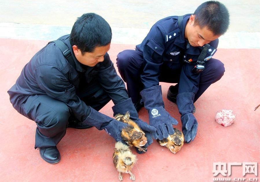 被救助的國(guó)家二級(jí)保護(hù)動(dòng)物倉(cāng)鸮(央廣網(wǎng)發(fā) 郭麗娟 攝) 央廣網(wǎng)普洱1月5日消息(記者李騰飛 通訊員郭麗娟 常國(guó)軒)1月2日,云南省寧洱縣警民聯(lián)手成功救助了3只國(guó)家二級(jí)保護(hù)動(dòng)物小幼鸮。 當(dāng)天上午10時(shí)左右,寧洱縣森林公安局接到寧洱縣同心鎮(zhèn)林業(yè)服務(wù)中心送來(lái)的三只被雨水淋透的“猴面鷹”。2日凌晨,同心鎮(zhèn)那柯里的一位李姓村民到農(nóng)田干活時(shí),途經(jīng)同心治超點(diǎn)公路邊時(shí),聽(tīng)見(jiàn)路邊排水溝里發(fā)出呼呼的響聲。他尋聲去找,發(fā)現(xiàn)水溝里窩著三個(gè)貓頭鷹在瑟瑟發(fā)抖。李大哥找來(lái)紙箱把它們裝好,準(zhǔn)備拿回家救助,恰巧途中遇到了正在林區(qū)巡查的林業(yè)服務(wù)中心工作人員,后轉(zhuǎn)交至森林公安。 被送到到縣森林公安局時(shí),三個(gè)小家伙躲在紙箱里非常虛弱,體型較小的一只已經(jīng)奄奄一息,另一只的喙也受了傷。民警們立即用干毛巾將淋濕的“猴面鷹”擦干,使用消毒水對(duì)傷口進(jìn)行清創(chuàng),并買(mǎi)來(lái)了鮮肉和葡萄糖水一點(diǎn)一點(diǎn)的給它們喂食。 經(jīng)過(guò)民警一天的精心照顧,三個(gè)小家伙精神狀態(tài)有所好轉(zhuǎn),慢慢地開(kāi)始自主進(jìn)食。 經(jīng)專業(yè)鑒定,三只鳥(niǎo)學(xué)名叫倉(cāng)鸮,當(dāng)?shù)厝擞址Q猴面鷹、猴頭鷹等,是夜行猛禽,屬于國(guó)家二級(jí)保護(hù)動(dòng)物。 鑒于這三只倉(cāng)鸮均為幼鳥(niǎo),且森林公安不具備飼養(yǎng)條件,寧洱縣森林公安局于1月3日上午聯(lián)系并將三只倉(cāng)鸮送往普洱市野生動(dòng)物收容救助中心進(jìn)行進(jìn)一步救助。