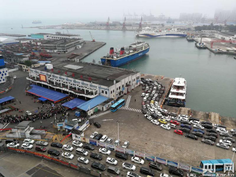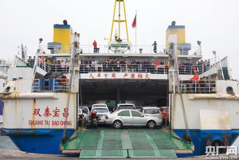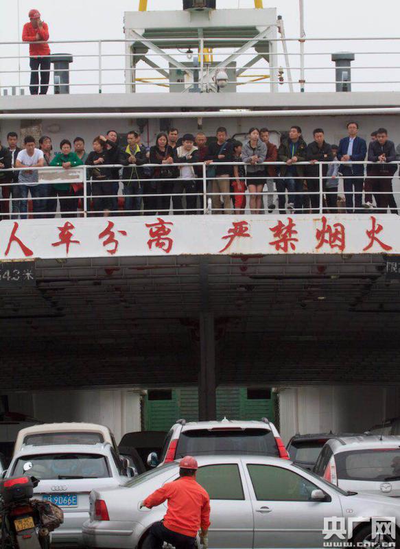 • 登船的人流和車流(央廣網發 杜德成攝)
