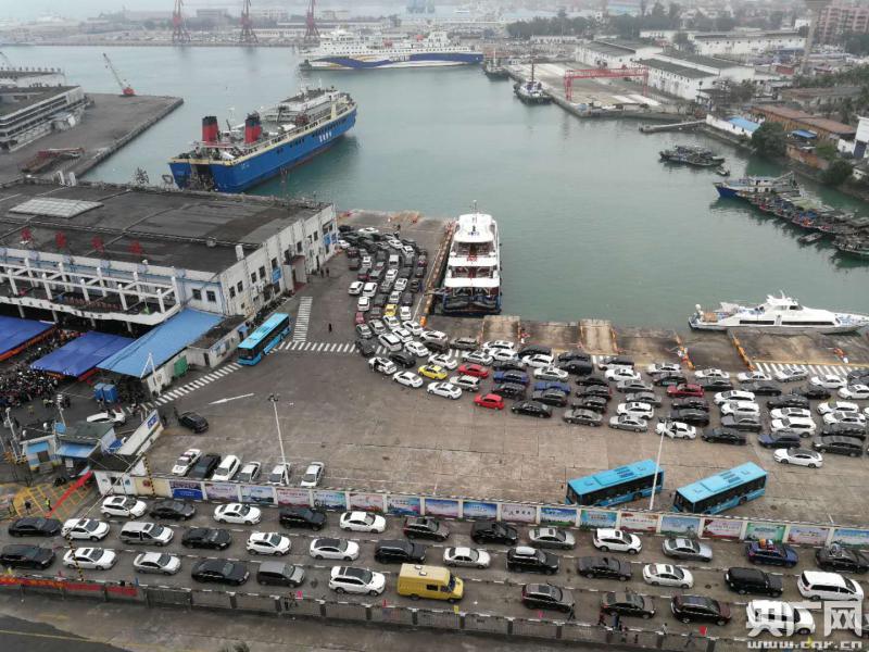 • 登船的車流和人流(央廣網發 杜德成攝)