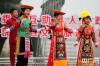 身穿五彩服飾表演土族“安召”舞(央廣網記者 張雷 攝) -