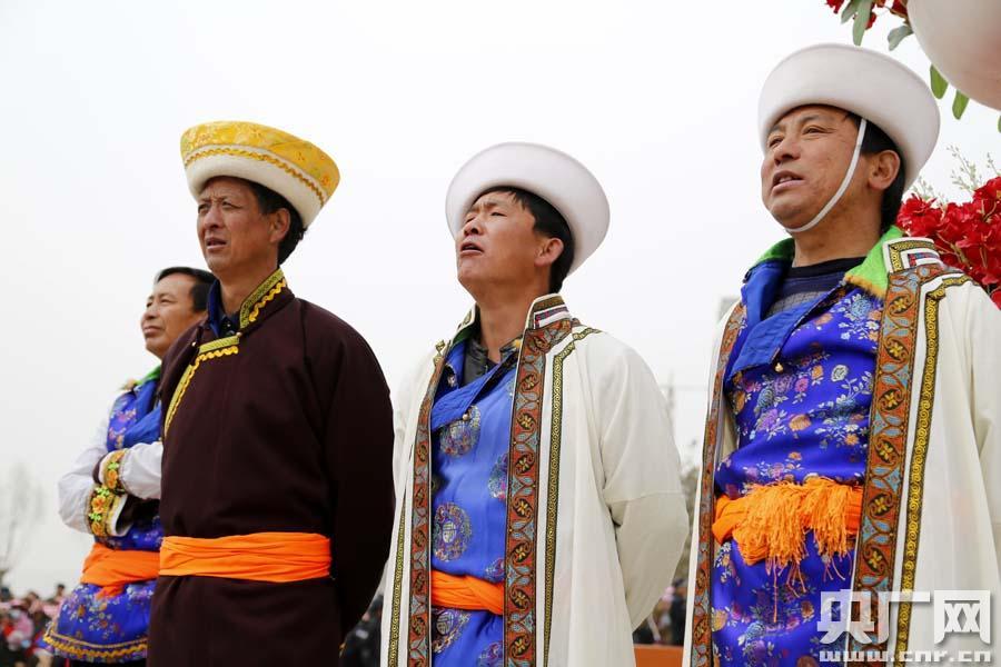 身著民族服飾觀看演出的土族男子(央廣網記者 張雷 攝)