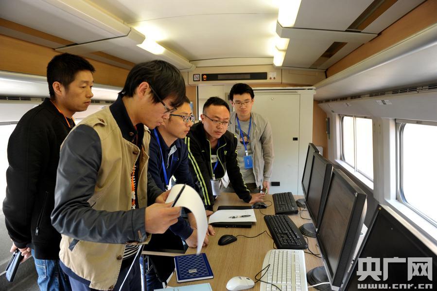 技術人員在檢測列車運行數據。張偉明攝 -