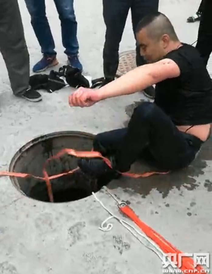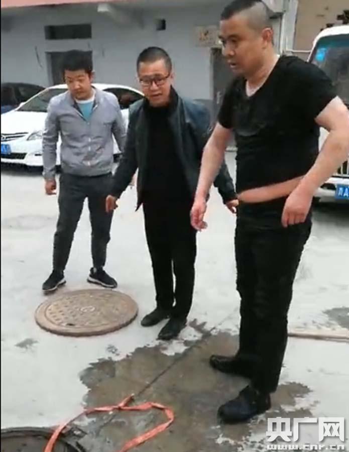 李明君將孩子救出后從陰井中出來(西寧市民現場手機視頻截圖) 揪心:3歲男童不慎掉進化糞池 監控視頻顯示,一名女子帶著兩個孩子在小區院內玩耍,當女子正在照看較小的孩子時,另一名較大的孩子獨自走到一口陰井的井蓋上。忽然井蓋一翻,孩子掉進了井里。女子看到后,立刻跑過去掀起井蓋看了一眼,然后慌張地跑向附近的一名男子求救。男子立刻跑到井邊,另一名女子也跟著趕到。男子趴在井口看了一下,便下到井里,抽出褲腰帶,將一端遞到隨后趕來的女子手中,自己拽著另一端就下了井。 -