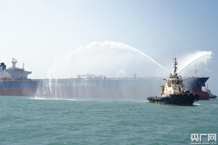 演習模擬一艘出港外籍油船與一艘海上旅游觀光客船發生碰撞(央廣網發 惠州海事局供圖)
