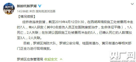 2019年4月11日晚,深圳市瞬時強(qiáng)降雨引發(fā)洪水,到目前為止,死亡人數(shù)增至6人,相關(guān)救援工作仍在緊張進(jìn)行。
