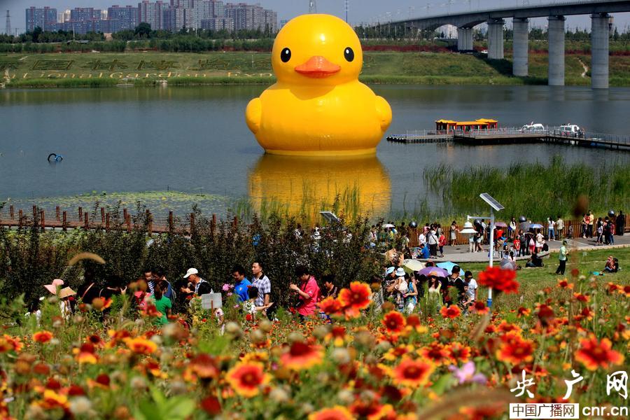 央廣網北京9月8日消息(記者李文蕊)秋日的北京又到了旅游的黃金季節。大黃鴨亮相園博湖的首個周末游客明顯增多,開園僅1小時,1.1萬人涌入園博園。截止下午17點,超過5萬人來到了園博園,夜場還將吸引游客從四面八方趕來源源不斷地來到園博園。