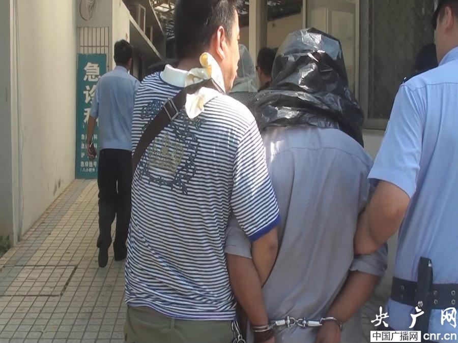 民警帶兩名嫌疑人到醫院檢查(央廣網記者 范存寶 攝)