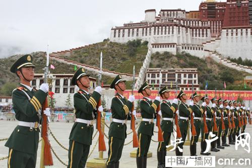 西藏舉行升國旗唱國歌儀式慶祝祖國64歲華誕
