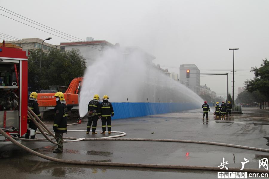 消防部門對斷裂的天然氣管道處進行稀釋(央廣網發 通訊員王文娟攝)