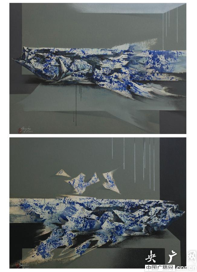 作品是以“魚”為主題,通過水彩畫濕畫法,運用丙烯與水彩結合罩染完成。(陳恬立 攝)