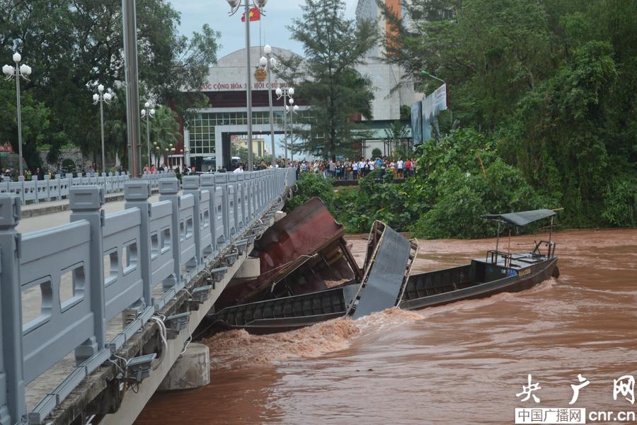 抽沙船撞上中越友誼大橋(央廣網發 隆壯文 攝)