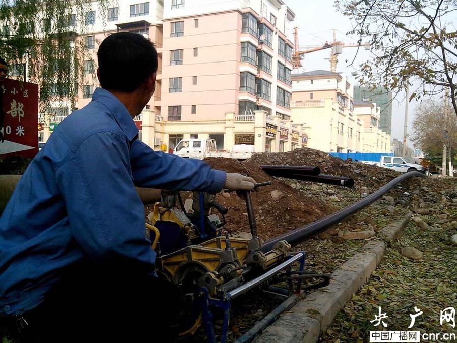 緊張搶修受損燃?xì)夤芫(央廣網(wǎng)記者 吳卓勝 攝)