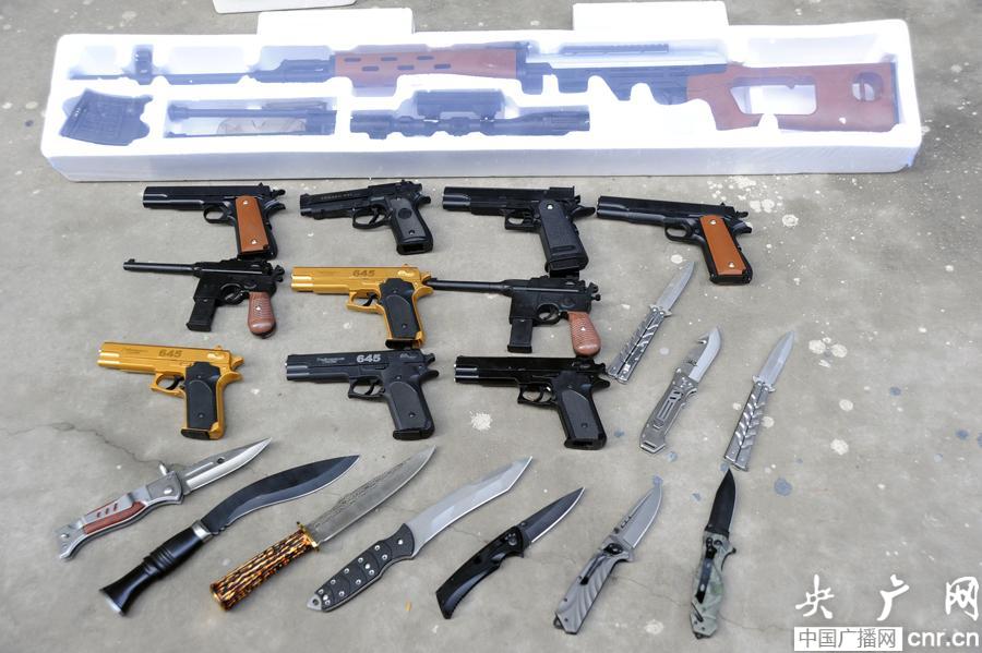 查獲的管制刀具和仿真槍(央廣網發 馮忠海 攝)