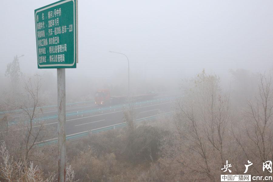新疆精河縣遭遇罕見持續大霧侵襲(央廣網發 田向東攝)