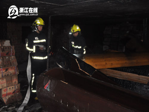 經過1個多小時的緊張撲救,大火最終被撲滅。消防人員清理現場,除了4口棺材被燒毀之外,其余的三四十口棺材均完好無損,棺材里面沒有東西。