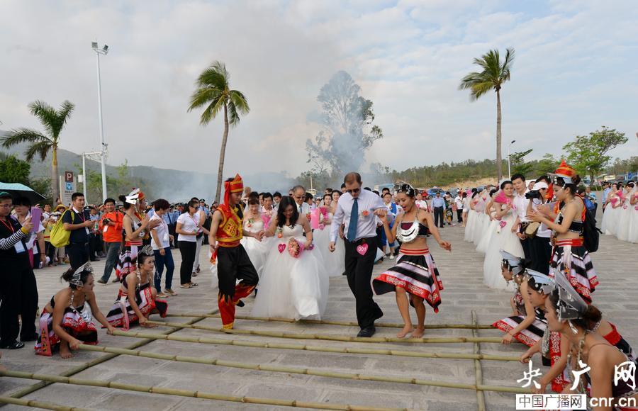 央廣網海口12月13日消息(記者許云 通訊員黃守慶 游必生)2013年12月12日,諧音為“一生要愛要愛”的特殊日子,“2013年第17屆中國三亞天涯海角國際婚慶節”在愛情圣地浪漫啟幕,68對中外情侶在大海的見證下宣告愛的誓言。