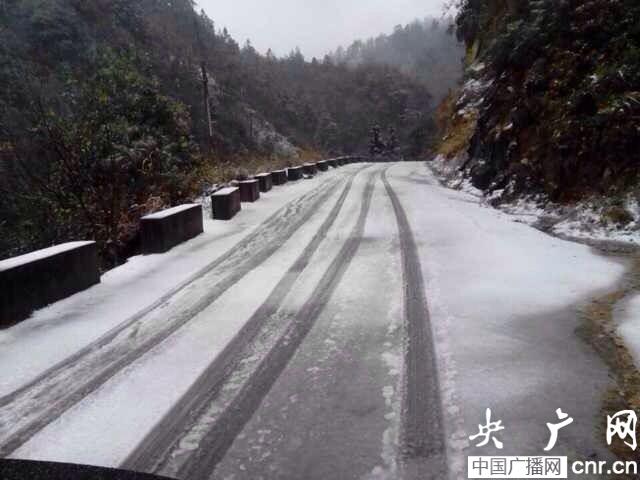 柳州市融水縣降雪至路面結冰(央廣網記者 張壘 攝)