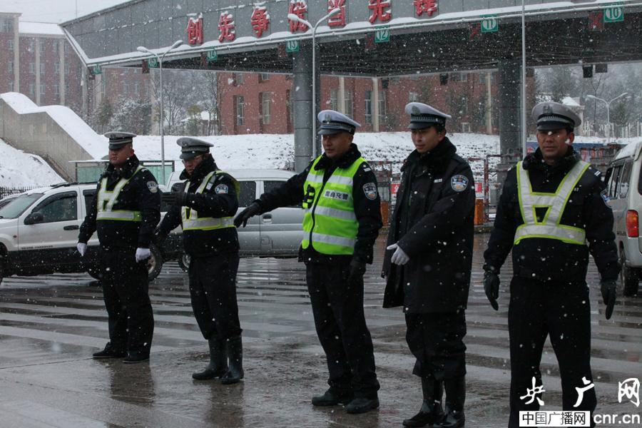 云南多條高速因雪封閉 交警全力應對雨雪天氣(央廣網記者 李健飛攝)