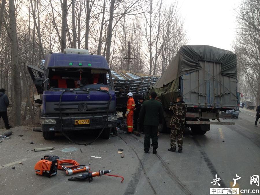 央廣網亳州12月22日消息(記者梁明星 通訊員張超)今天上午(22日)上午7時許,105國道亳州洪河大橋往北路段發生一起車禍,一輛滿載鋼管的掛車與一輛貨車相撞,事故造成貨車司機當場死亡。