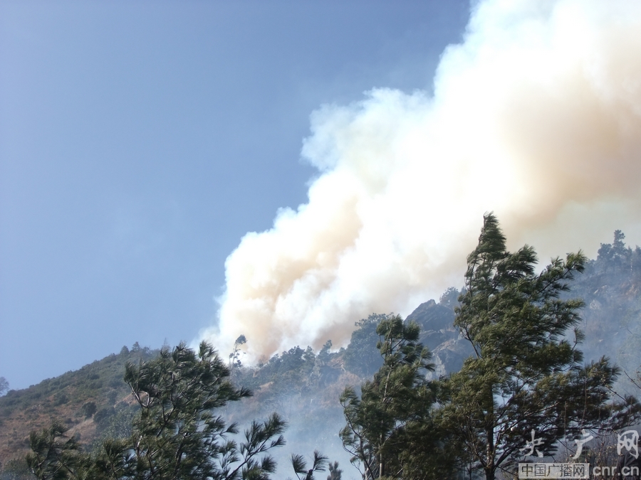 央廣網(wǎng)昆明12月28日消息(記者陳鴻燕 通訊員徐濤 胡署利)云南大理市蒼山斜陽峰今天中午12點(diǎn)左右發(fā)生森林火災(zāi)。山火一度借風(fēng)勢呈W字型擴(kuò)張,有可能威脅鳳凰山風(fēng)電站和省級文物保護(hù)單位將軍洞的安全。現(xiàn)場目測過火面積達(dá)2000多畝。武警大理州森林支隊(duì)立即啟動(dòng)森林火災(zāi)撲救應(yīng)急預(yù)案。他們按照就近用兵、快速集結(jié)的原則,迅速調(diào)集直屬、大理、漾濞三個(gè)中隊(duì)共80名官兵,第一時(shí)間奔赴火場實(shí)施撲救。