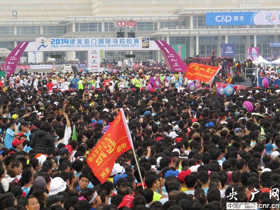近8萬(wàn)人開(kāi)跑2014廈門(mén)國(guó)際馬拉松賽(央廣網(wǎng)記者 陳庚 攝)
