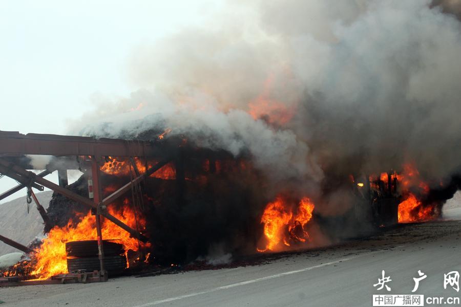 央廣網蘭州1月13日消息(記者焦健 通訊員方矩)一輛車牌為陜AG1790掛的30米加長貨車,行駛在國道310線甘肅省天水市麥積區伯陽鎮保安村段時突然起火,消防官兵經過近四小時的不懈努力,將大火終撲滅。