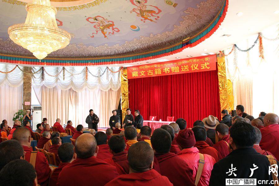 西藏出版協(xié)會(huì)今日向區(qū)內(nèi)三百多家寺廟贈(zèng)送藏文古籍書(shū)(央廣網(wǎng)記者 普布次仁 攝)