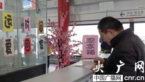 央廣網(wǎng)北京1月27日消息(記者李文蕊 通訊員孫立杰)春節(jié)是團圓的日子,春運也是軌道交通最繁忙的階段之一,在為攜帶著大包小包回家過年的乘客服務(wù)的同時,北京地鐵員工也考慮到了因為各種原因不能回家的乘客,從臘月廿三到正月十五,每天10點至15點,乘客可以在15號線后沙峪站站臺層免費領(lǐng)取明信片,現(xiàn)場填寫完后投入車站設(shè)立的“思念箱”內(nèi),地鐵員工會定期將明信片郵寄至目的地址,將乘客的祝福送到遠(yuǎn)方的家中。