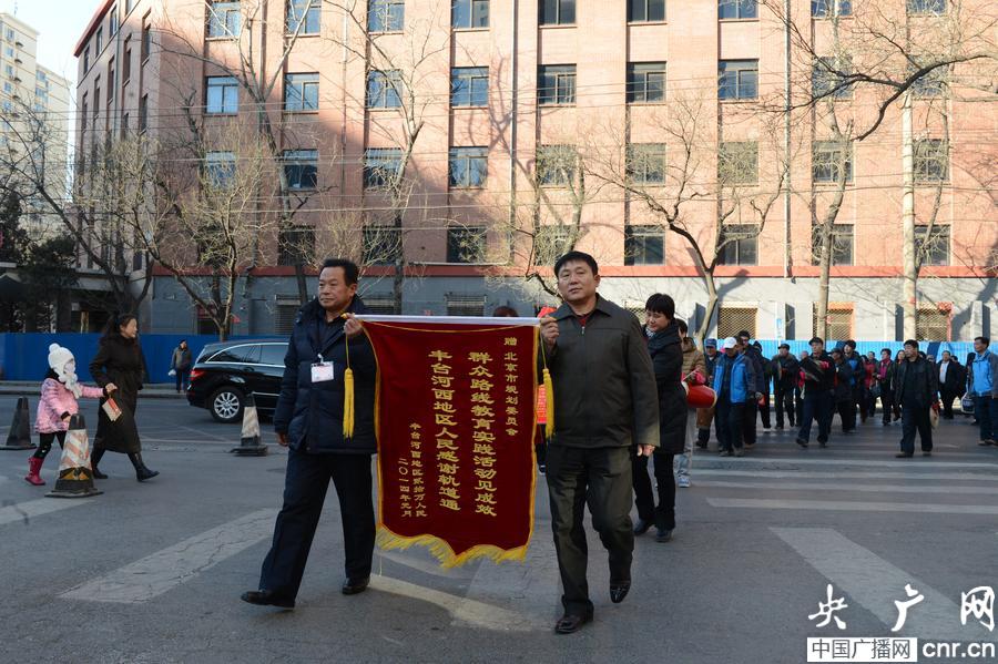 群眾代表向北京市規劃委贈送感謝信和錦旗(央廣網發 魯忠獻 攝)