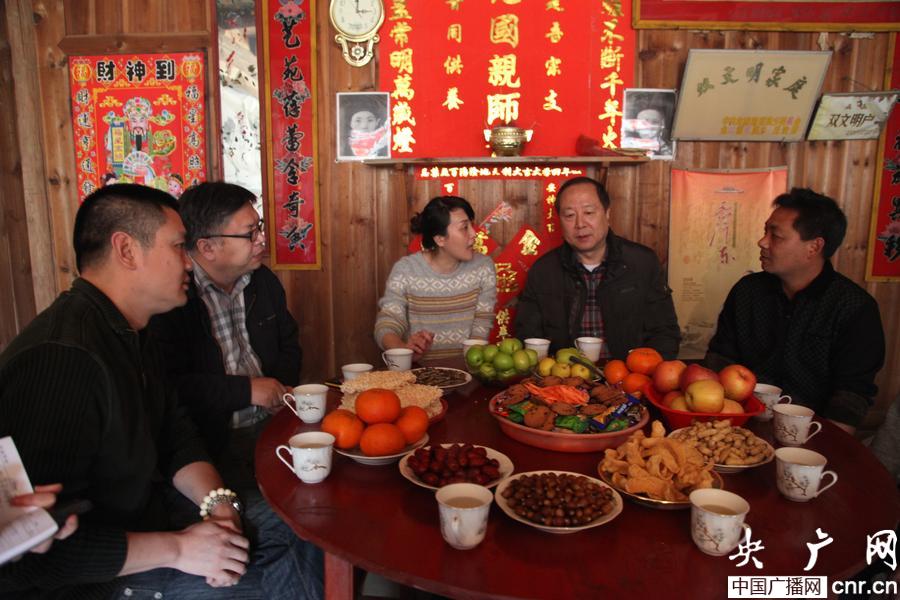 中央臺副臺長趙鐵騎帶領新春走基層湖南采訪團到懷化洪江市龍船塘鄉翁朗溪村采訪(央廣網記者 鄧文輝 攝)