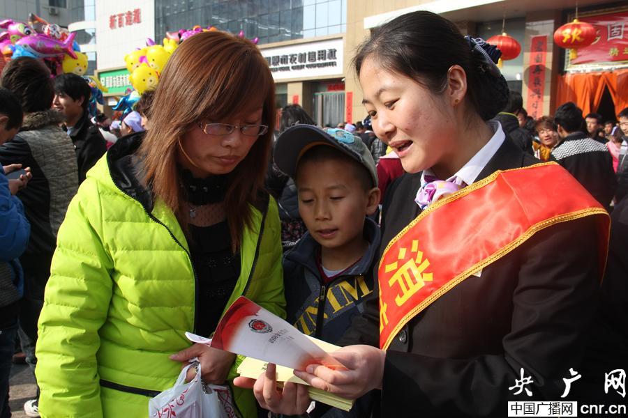 消防官兵和志愿者利用消防宣傳車等在現場播放政府有關元宵節期間禁放孔明燈的通知,公共聚集場所消防安全,家庭火災預防等事項。消防宣傳人員針對家庭日常用火、用電、用油、用氣安全等情況向群眾進行了細致講解。現場還專門設立消防安全知識咨詢臺、宣傳展板,現場發放消防安全常識宣傳品等,消防宣傳員向群眾講解自查自糾火災隱患、舉報火災隱患、撲救初起火、火場逃生等基本常識。