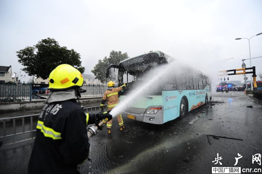 寧波市區一輛公交起火(央廣網發 顏杰 攝)