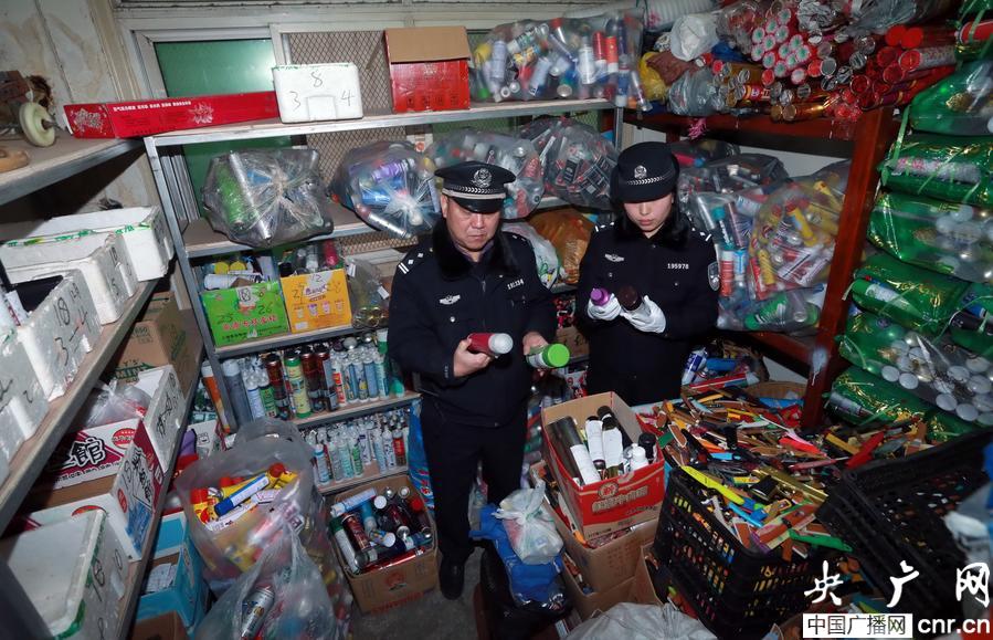 武漢鐵路民警展示收繳的管制刀具(趙軍攝 央廣網發)