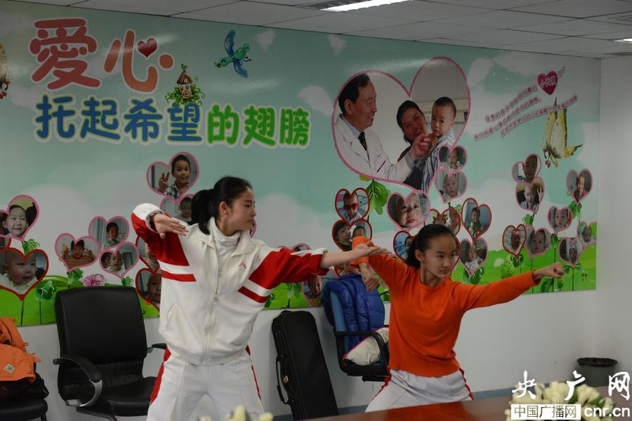 人大附中學生為患兒表演武術(央廣網發 吉昱攝)