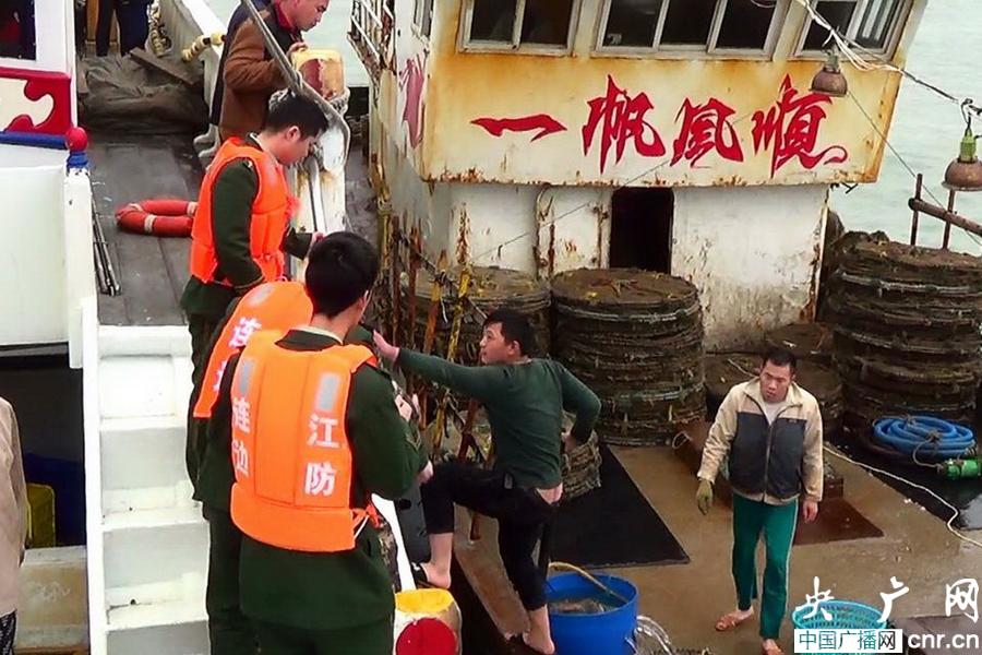 由于當時海上風力達8級,浪高達3米,加上該海域海況復雜,救援船多次靠幫均被海浪打散。見此情況,邊防官兵與救援漁民采取拋撒纜繩、再固定拖拽的方式,多次努力之下才與遇險漁船搭靠成功。邊防官兵首先將10名遇險船員安全轉移到臺輪“順利泰”號,隨后將船上滿載的海鮮漁貨搬運至其余救援船只。在減輕船體負重后,他們抽調3臺大馬力水泵將船艙積水迅速抽出。經過一個多小時的救援,遇險漁船險情被成功排除,船員及魚貨均被安全轉移上岸。隨后,遇險船只被救援人員拖回連江縣黃岐中心漁港。