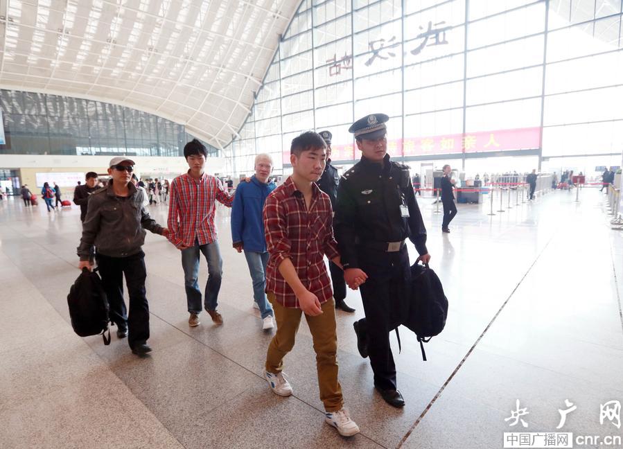 武漢鐵警:為 “趕考盲人” 暢通“光明大道”(央廣網記者 張毛清 攝)