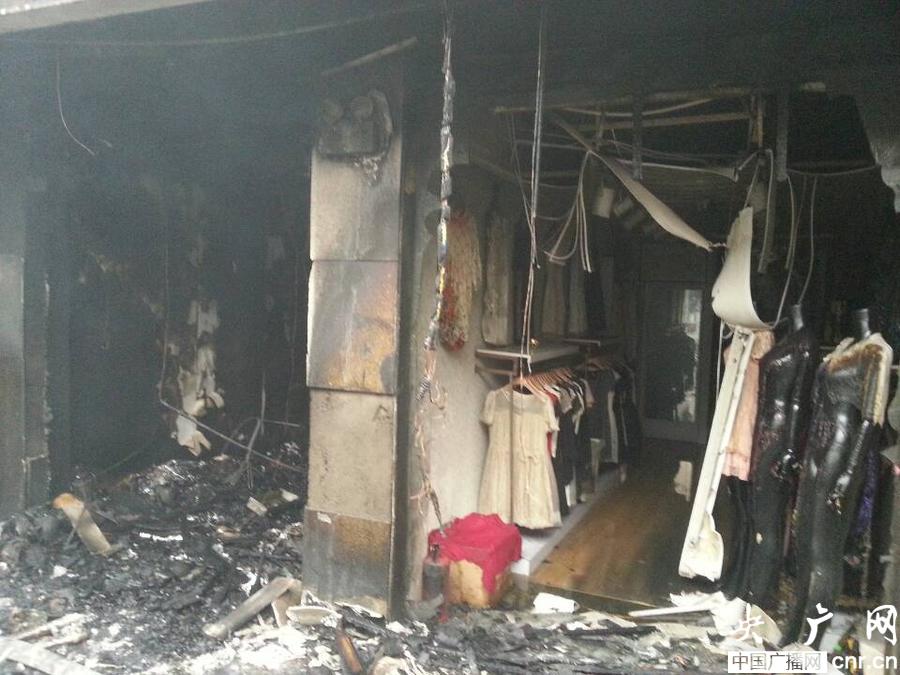 西寧商業巷被燒毀的商鋪(央廣網記者 楊陽 攝)