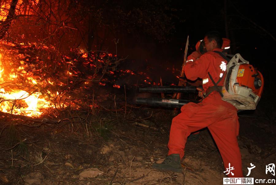昆明森警連夜奮戰(zhàn)在火場(chǎng)一線(央廣網(wǎng)發(fā) 彭明鑫攝)