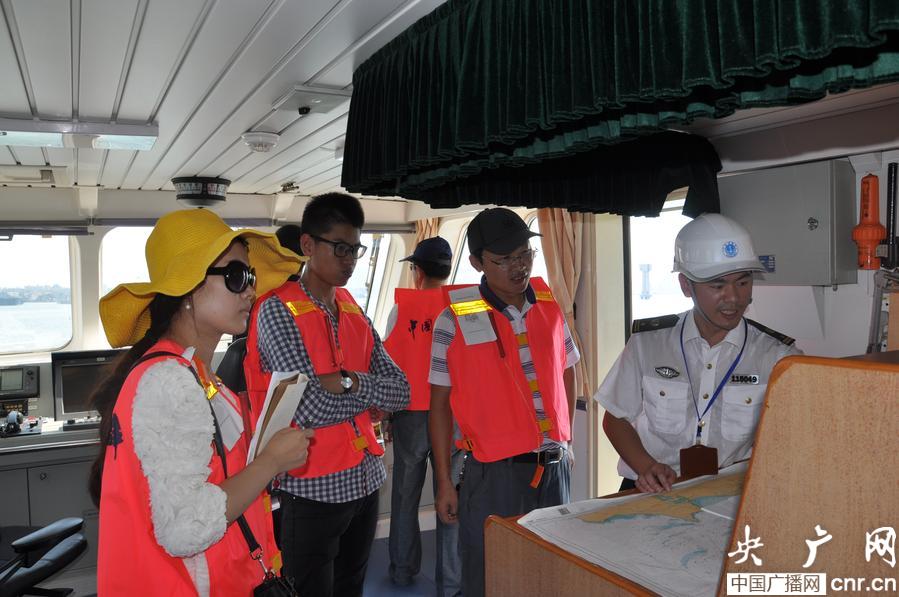活動中,洋浦海事局工作人員向師生代表展示并演示了救生衣、救生煙霧信號和火焰信號等幾種常見的救生設備和救生器材。為了進一步增強活動實效,洋浦海事局還邀請師生代表隨海巡船出海,實地介紹船體破損漏水、意外落水等幾種常見水上突發事故的應急處置措施和乘船注意事項。此外,洋浦海事局工作人員還帶師生代表參觀了海巡船,介紹了航海儀器和一般航海常識。