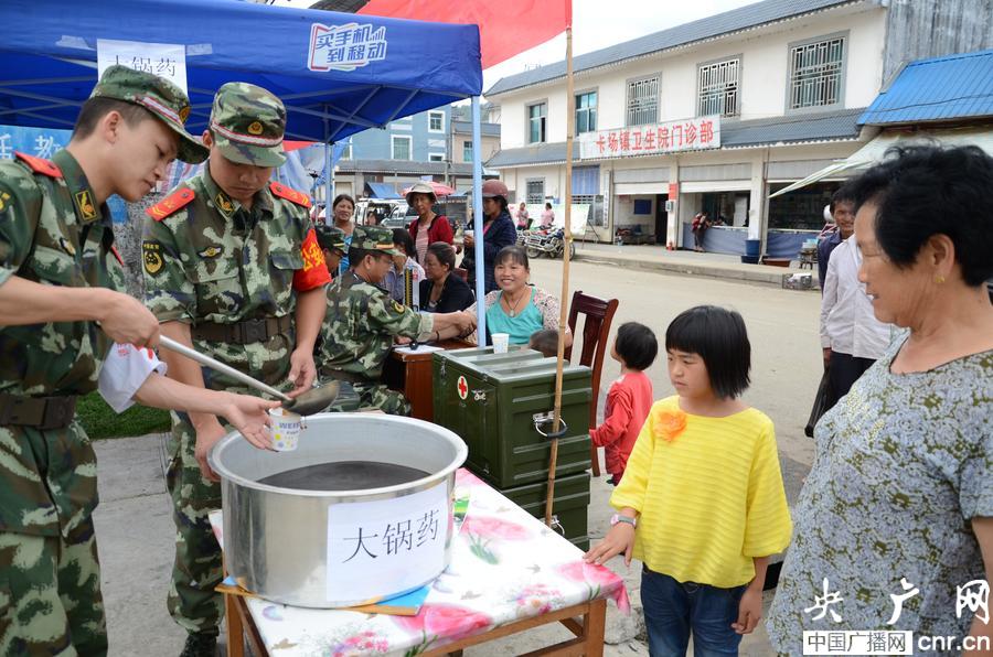 目前,由外科、內(nèi)科、中醫(yī)科、五官科等邊防醫(yī)務(wù)人員正在為災(zāi)區(qū)群眾義診,已為災(zāi)區(qū)群眾發(fā)放健康宣傳資料上千份。截至5月26日12時,該醫(yī)療服務(wù)隊共為600多名災(zāi)區(qū)群眾和其他救援人員義診,發(fā)放各類藥品價值1.2萬余元,熬煮大鍋藥10鍋累計服藥人數(shù)達(dá)600余人次,開展消毒防疫工作8次,消毒面積達(dá)10000余平方米,心理診療21人次。