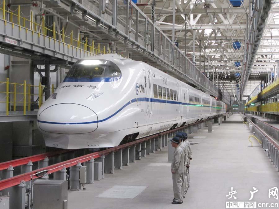 動檢車即將從烏魯木齊動車運用所駛出(央廣網記者 吳卓勝 攝)