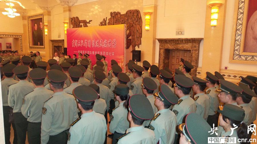 央廣網烏魯木齊6月9日消息(記者吳卓勝 通訊員李翔) 今天上午,由新疆軍區政治部舉辦的“發揮三隊作用,促進民族團結——新疆軍區部隊維護民族團結紀實”攝影作品展在北門八一劇場正式開幕。