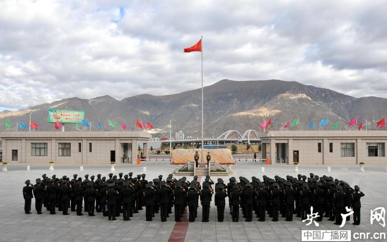 央廣網拉薩6月30日消息(記者索朗達杰 通訊員堅贊羅布)在“七一”來臨之際,西藏公安邊防部隊以多種形式歡慶偉大的中國共產黨93周年華誕。伴隨著雄壯嘹亮的國歌聲,鮮艷的五星紅旗同時在西藏八千里邊防線上冉冉升起,西藏公安邊防官兵面向國旗致以崇高的軍禮。