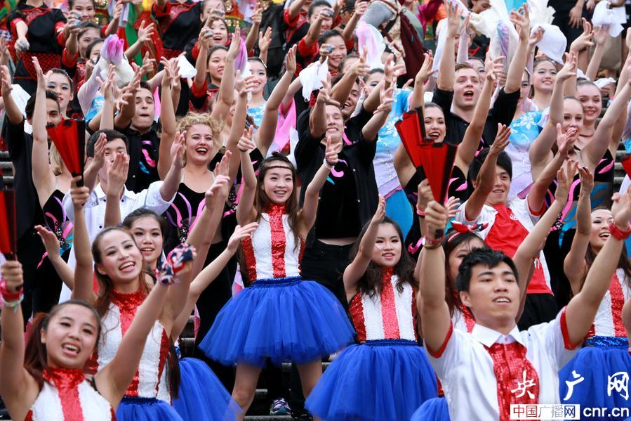 央廣網澳門7月19日消息(記者毛強)19日下午,由澳門特別行政區教育暨青年局主辦、澳門民政總署及亞洲教育北京論壇協辦的“國際青年舞蹈節2014”巡游表演在大三巴牌坊舉行。