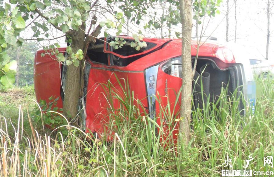據司機張某介紹,當日下午他正載著四位乘客沿通江大道往蕪湖市送客,車至事發路段時,突然看到車子前方有一只流浪狗跑過,距離很近。張某頓時嚇了一跳,連忙猛打方向,接著就踩剎車。沒想到,這一腳剎車踩下去,車子頓時側翻并打了個滾。他們從車里爬出來時,發現車子已經滾到路邊撞倒行道樹上。