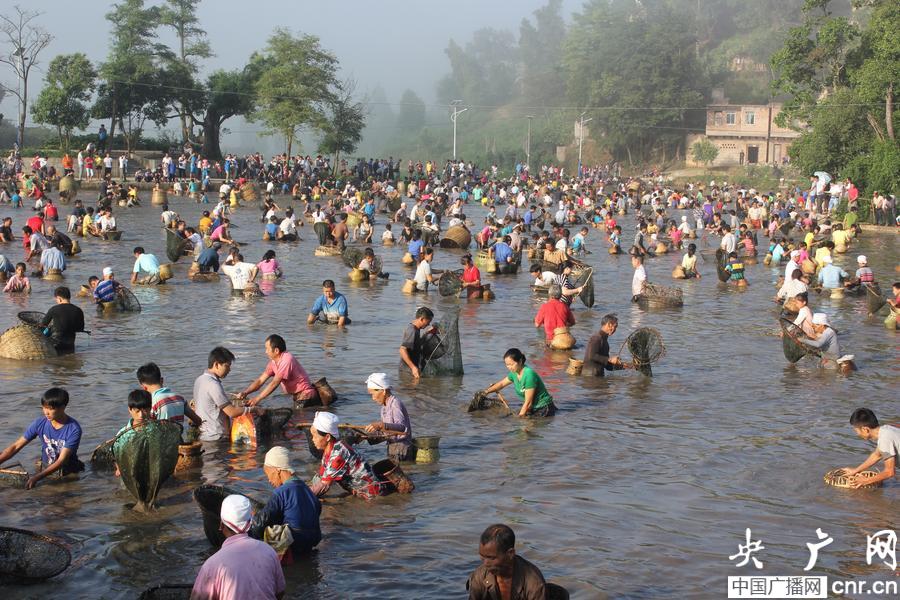 高塘苗寨千人捉魚場景 邰正蓮 攝