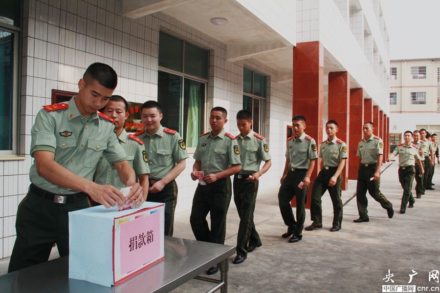 央廣網(wǎng)貴陽(yáng)消息(記者周強(qiáng) 通訊員張海濤 鄧剛)今天(8月5日),武警貴州總隊(duì)黔南支隊(duì)警勤中隊(duì)組織為云南魯?shù)榈卣鹗転?zāi)戰(zhàn)友代志大捐款7000余元。