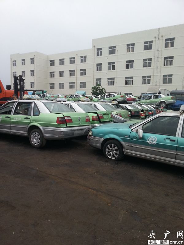 6日上午,在青島市金屬回收加工廠,137輛被查處的套牌出租車被集中銷毀,這些車都是公告期限后,沒有按時接受處理的車輛。這些出租車從外觀看,和真正的出租車沒有差別。按照相關規定,出租車運營到一定年限或里程后,必須要強制報廢,而一些下線后的出租車通過非法途徑進入到了二手車交易市場,價格僅幾千元。一些不法分子看中了這塊市場,買下這些報廢車,重新噴涂出租車標志,購買計價器、頂燈,偽造車牌、證件,這就從外觀上克隆出了一輛以假亂真的出租車。