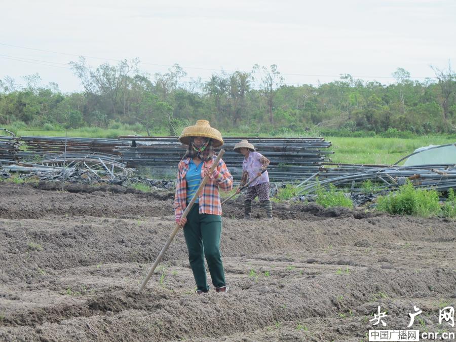 走進文昌潭牛鎮(zhèn)的一片蔬菜基地,梁亞寬正帶領(lǐng)著工人們清理土地上倒塌的大棚。一場臺風吹跑了梁亞寬200多畝即將上市的葉菜,損失達1000多萬,臺風后要想把蔬菜基地恢復(fù)原貌還需要再投入300多萬。梁亞寬準備從朋友那借點錢再加上自己的存款,重新投入,爭取三個月內(nèi)全部恢復(fù),看著眼前已經(jīng)清理好的第一批20多畝土地種上了新苗,梁亞寬信心滿滿。