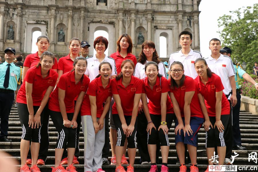 央廣網澳門8月14日消息(記者毛強)14日,正在備戰2014世界女排大獎賽澳門站比賽的中國女排來到澳門大三巴、議事廳前地等地,為即將于15日開始的比賽進行宣傳。